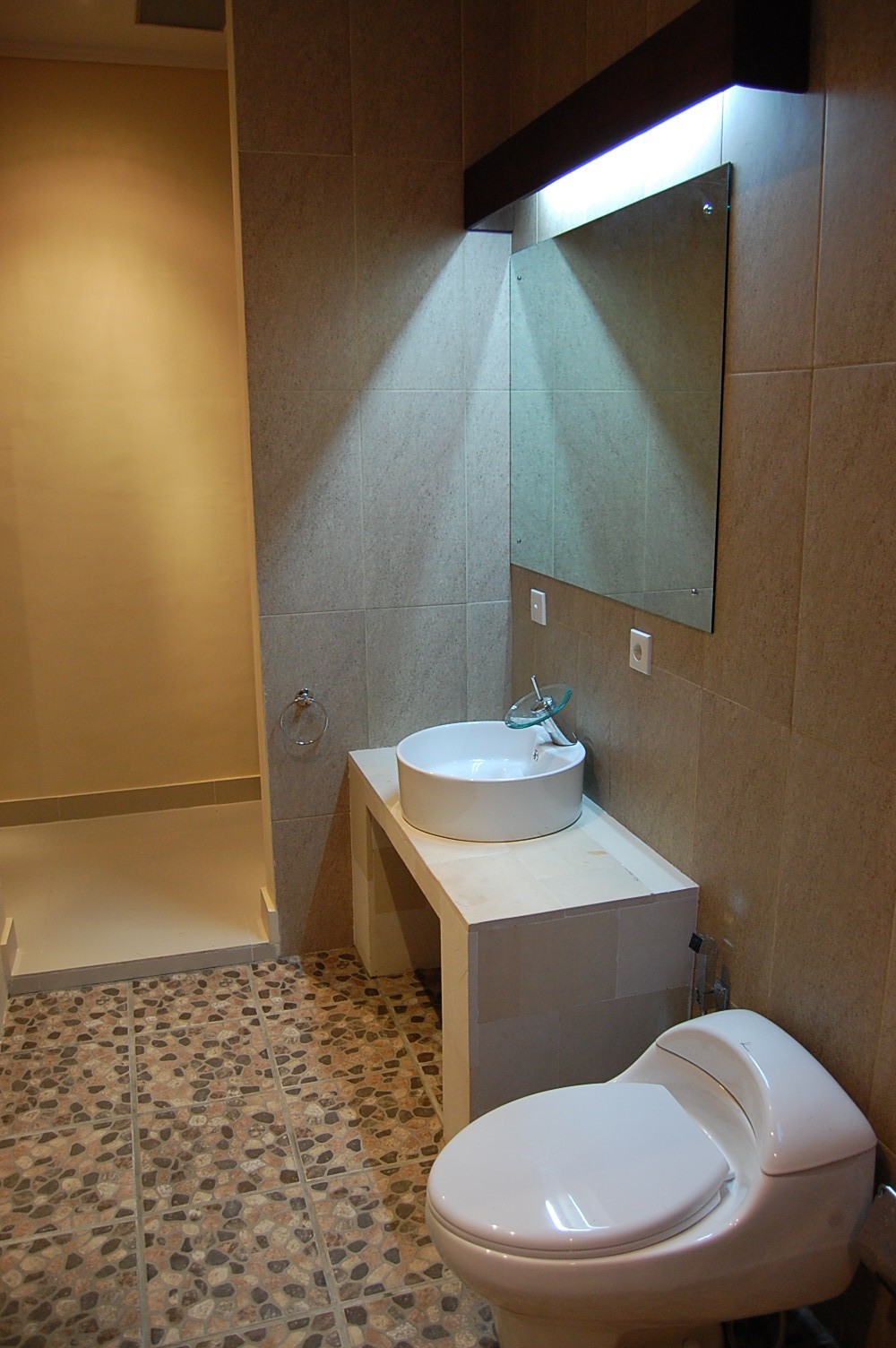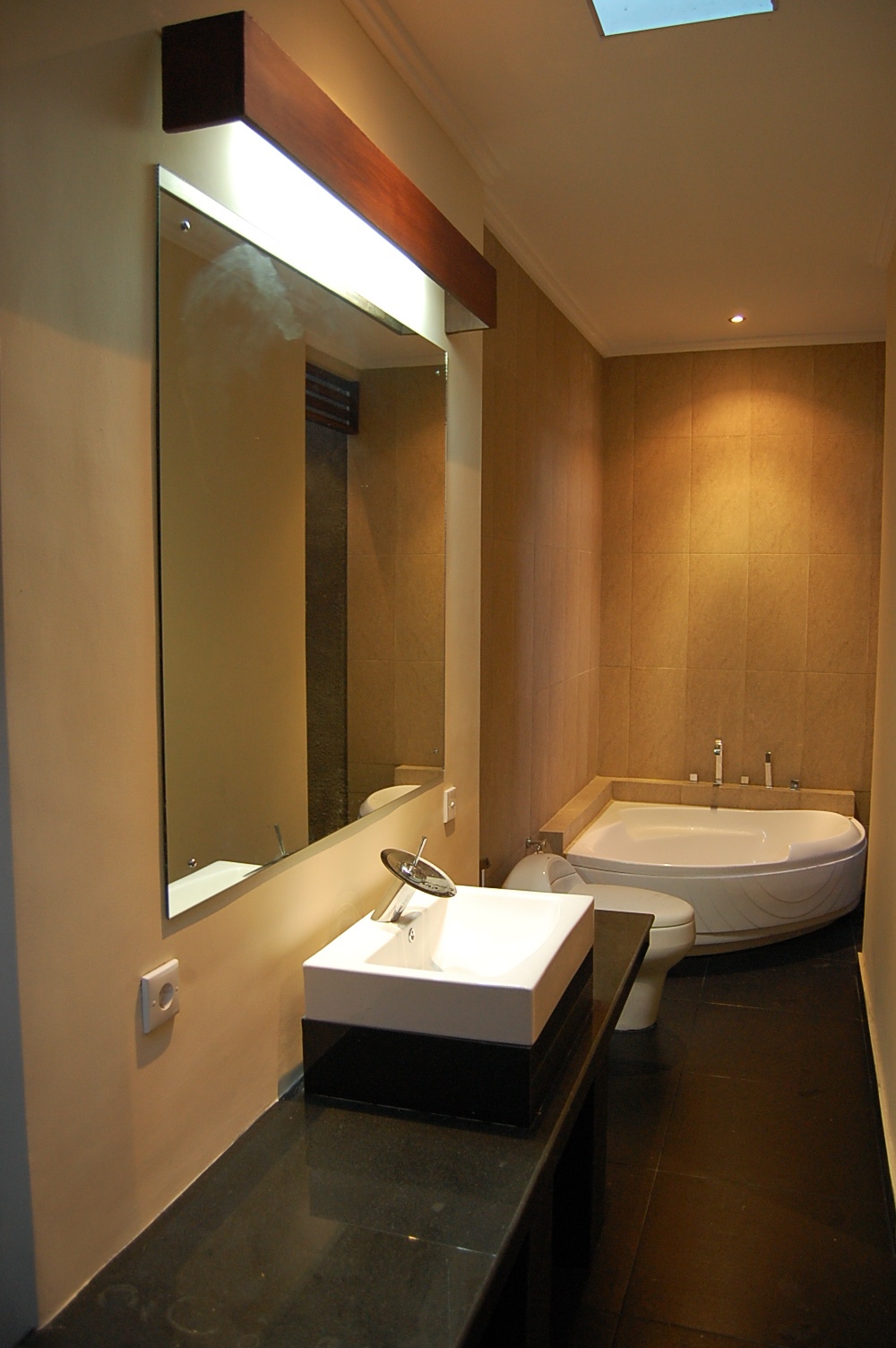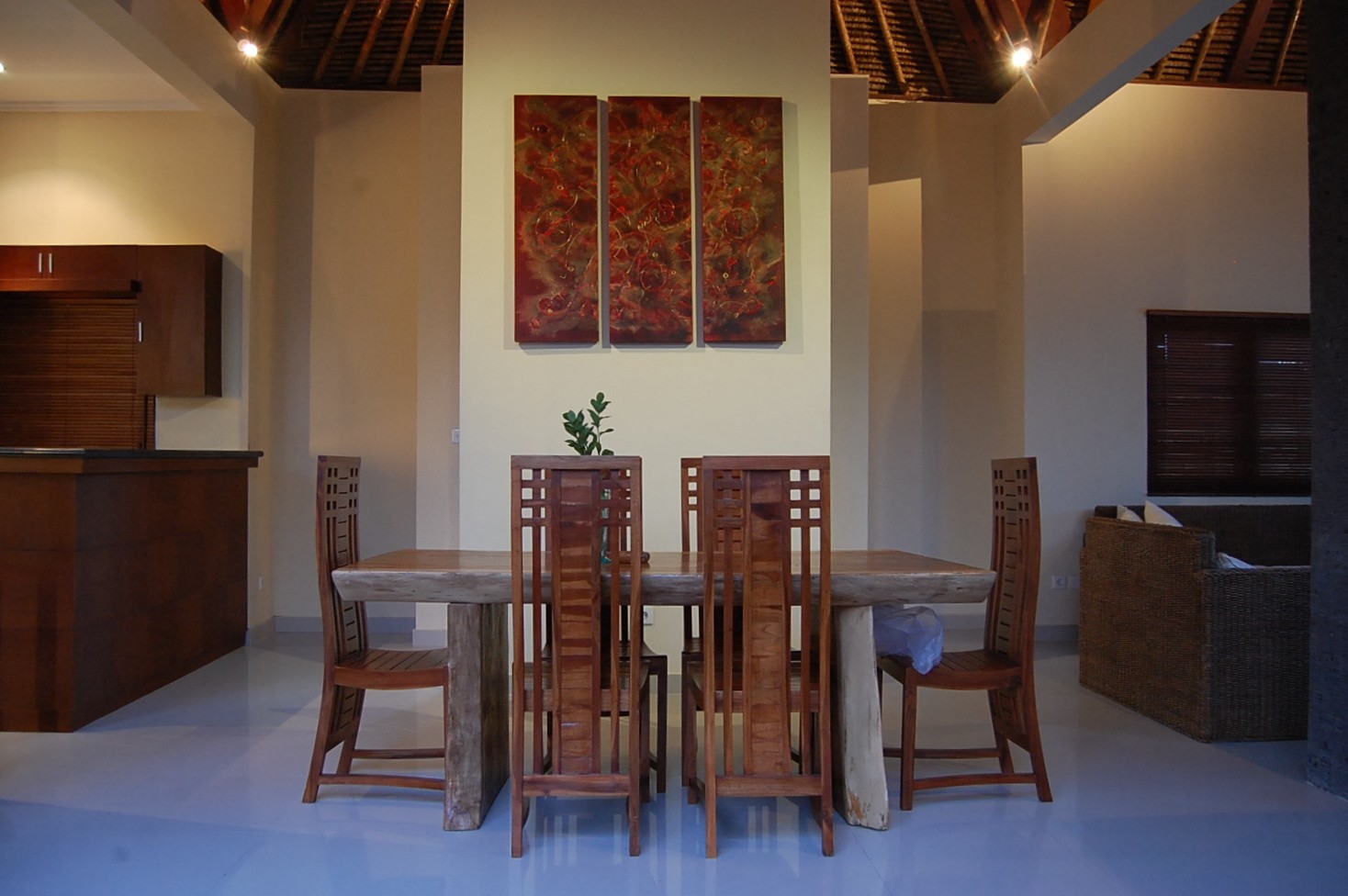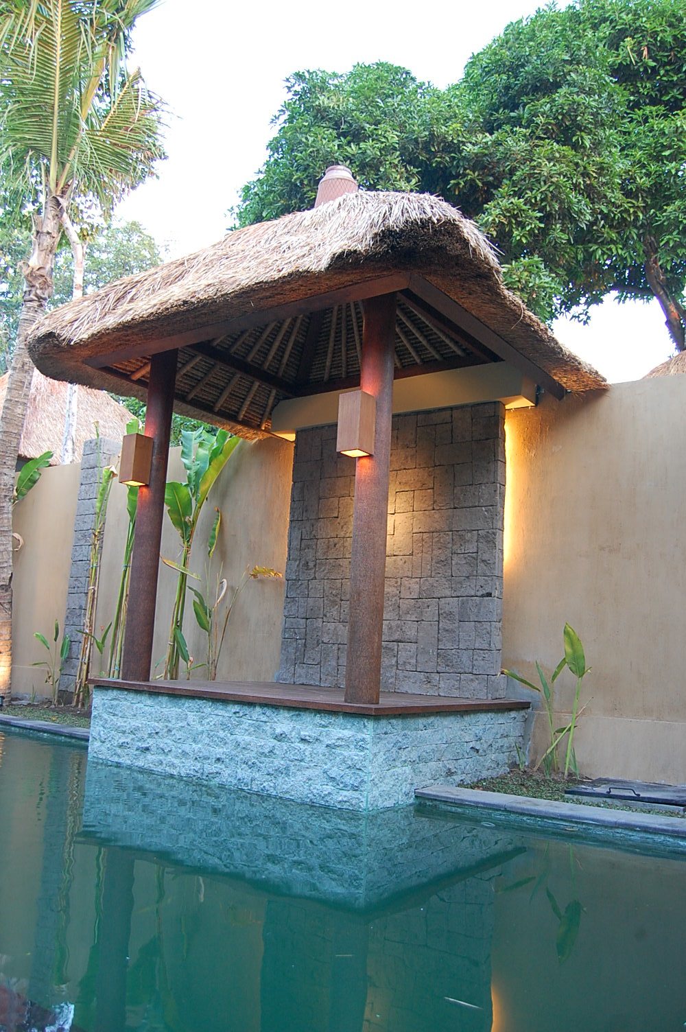 Kami melaksanakan konstruksi unit villa dengan gaya Tradisional Tropis Bali. Fokus utama proyek ini adalah eksekusi detail arsitektur lokal, khususnya pemasangan atap jerami/alang-alang yang menjadi ciri khas dan membutuhkan keahlian khusus. Proyek ini menampilkan kombinasi harmonis antara dinding berwarna earth tone dengan frame jendela dan pintu kayu gelap yang dominan. Kualitas finishing eksterior ditekankan untuk menciptakan suasana resort yang intim dan nyaman, dilengkapi dengan jalur setapak dan pencahayaan aksen yang terintegrasi di samping kolam.